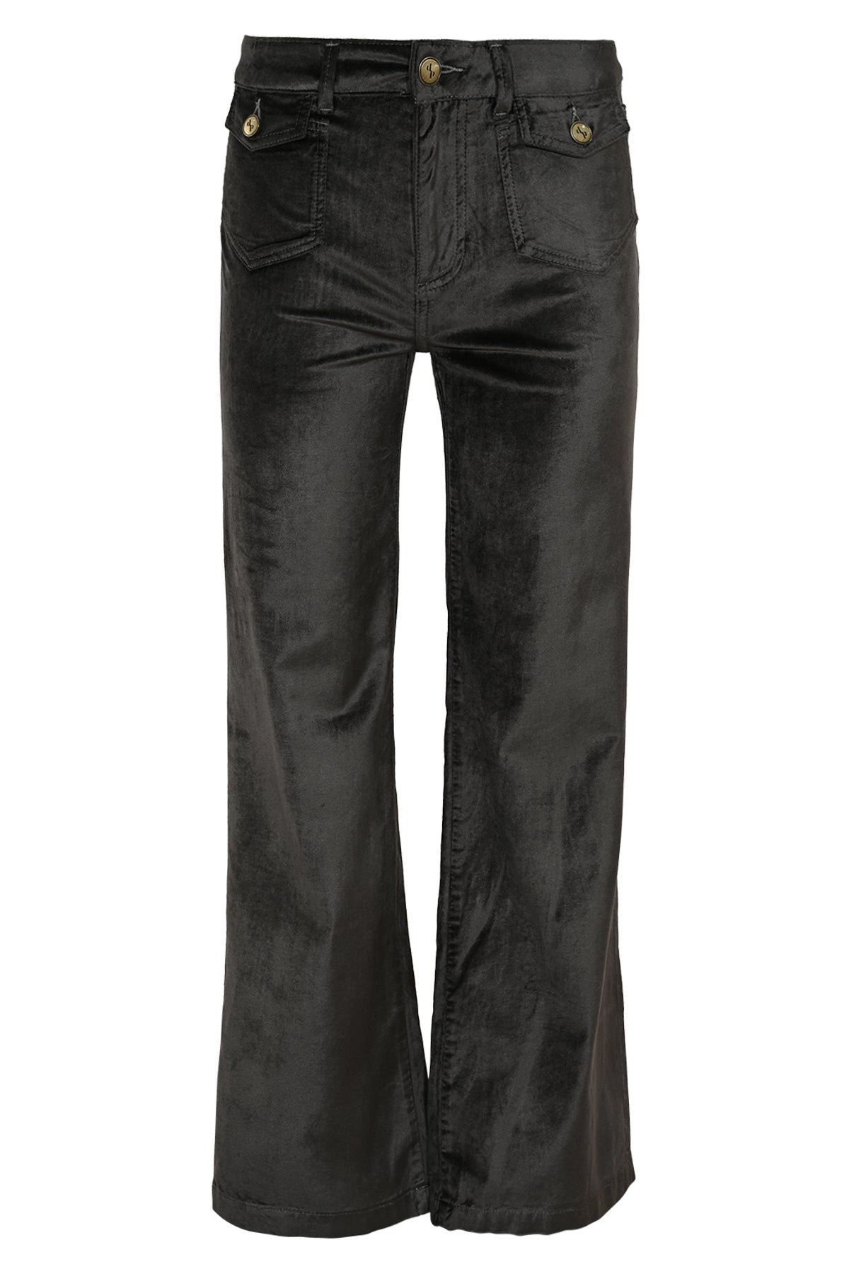 Front flap pocket high waist semi-wide leg jeans in high-end fabric. legs are a bit flared cut.