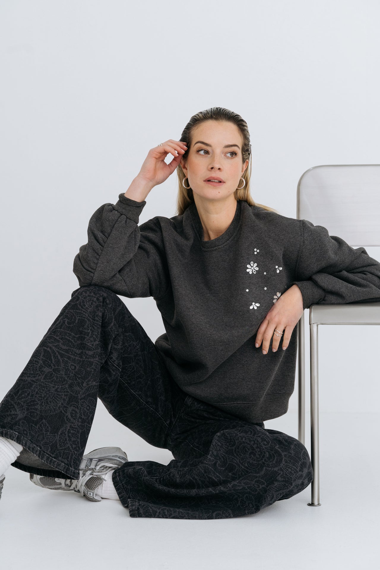 Oversized sweatshirt with puff sleeves