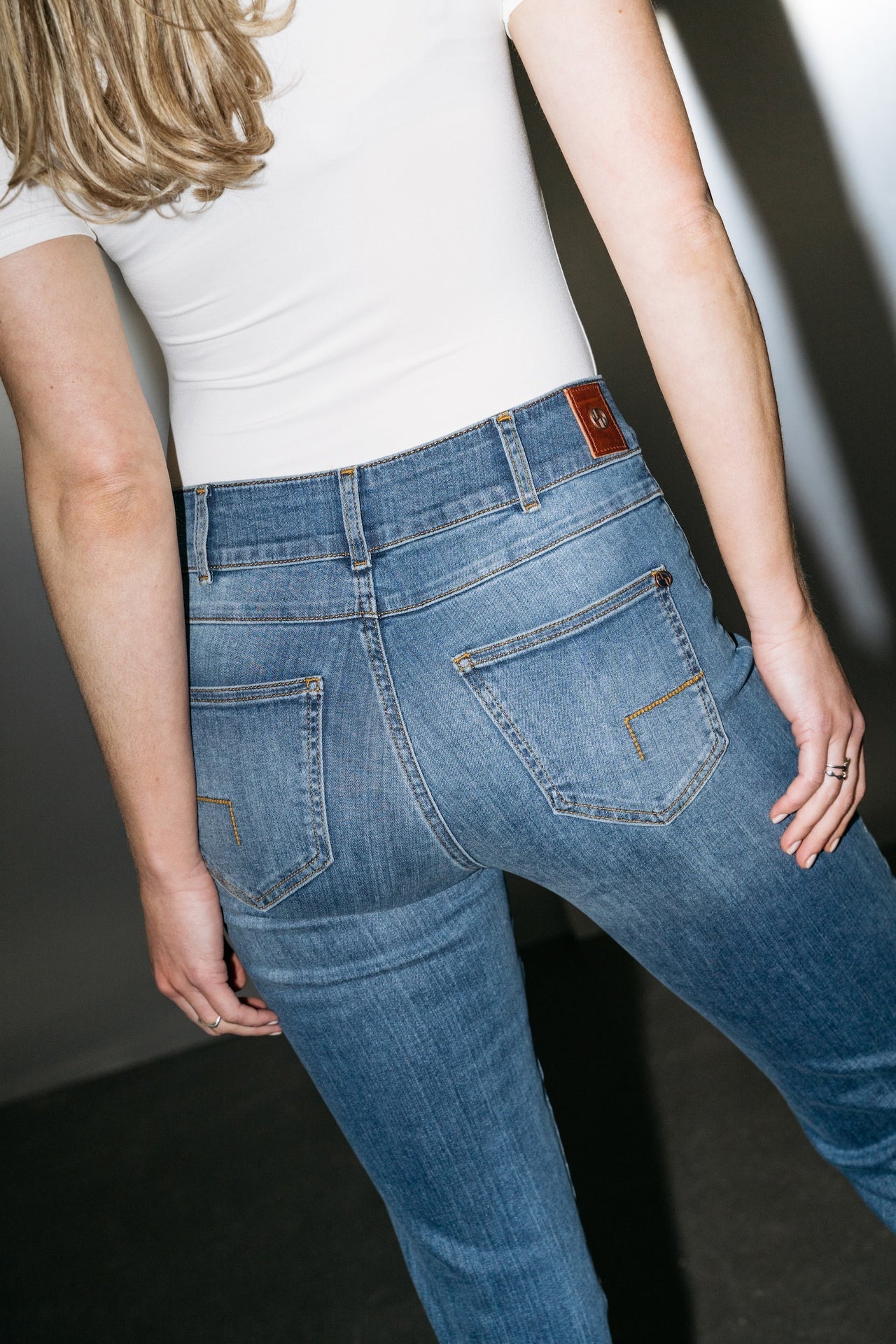 REGULAR FIT FLARED LEG 5-POCKET JEANS WITH BUTTON APLICATION