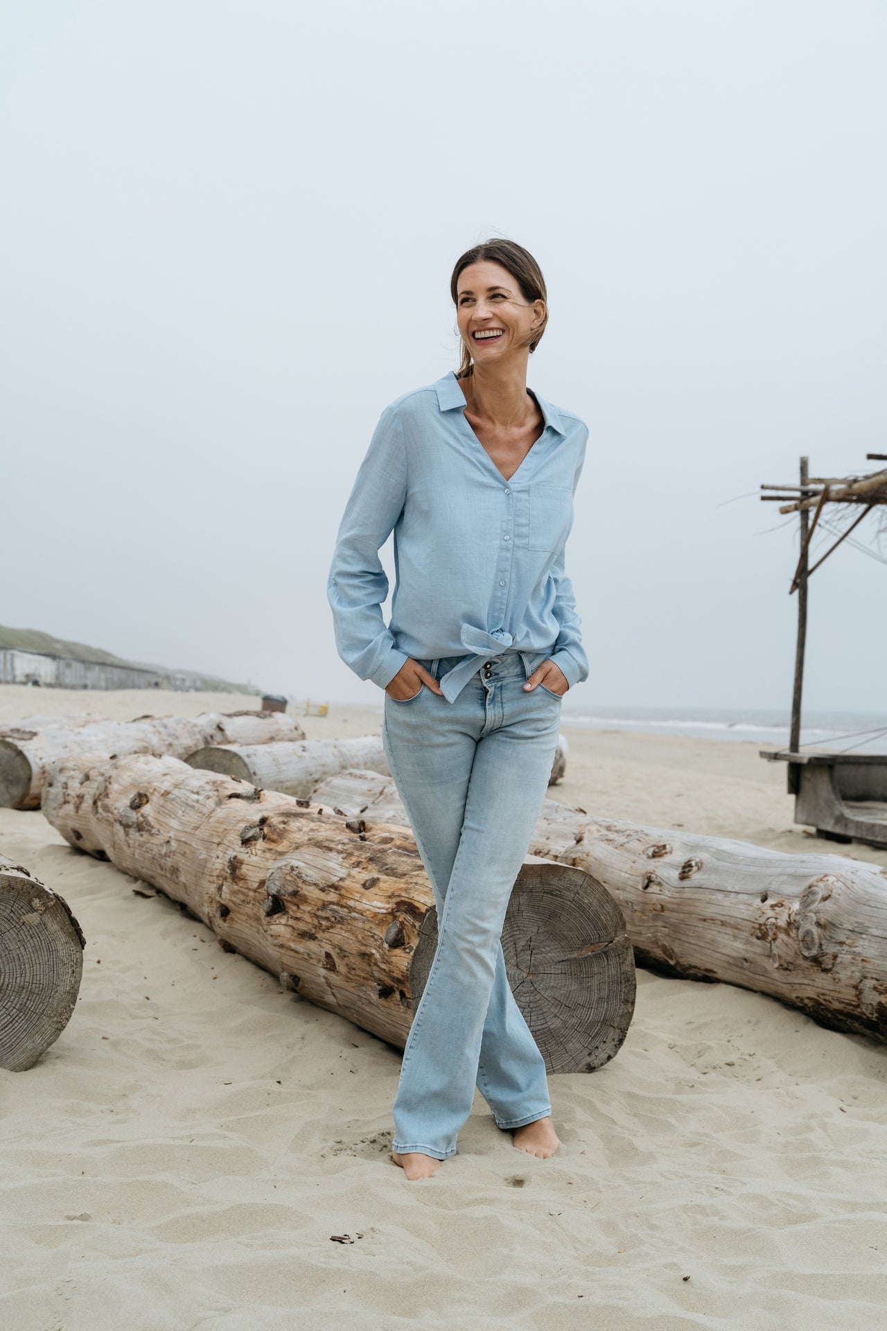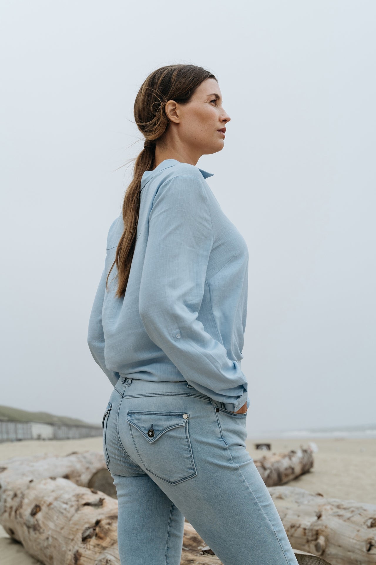 Flared jeans 5-pocket met klep achterzak.